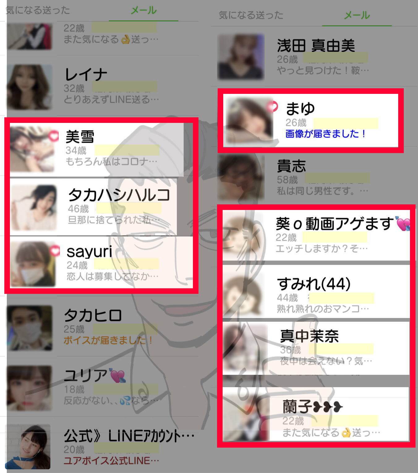 下の赤枠は、東京などで使っている人と同じ写真、同じプロフが確認できています(僕は瀬戸内海近辺です。)