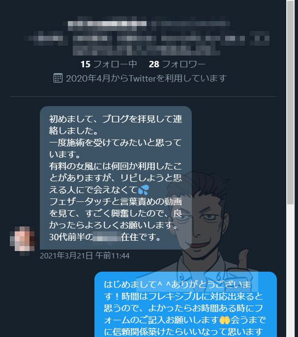 僕は、女風セラピ、セックスカウンセラーとして情報発信をしているため、DMはかなりきますが、DMが来るのはこのような捨て垢ばかりです。